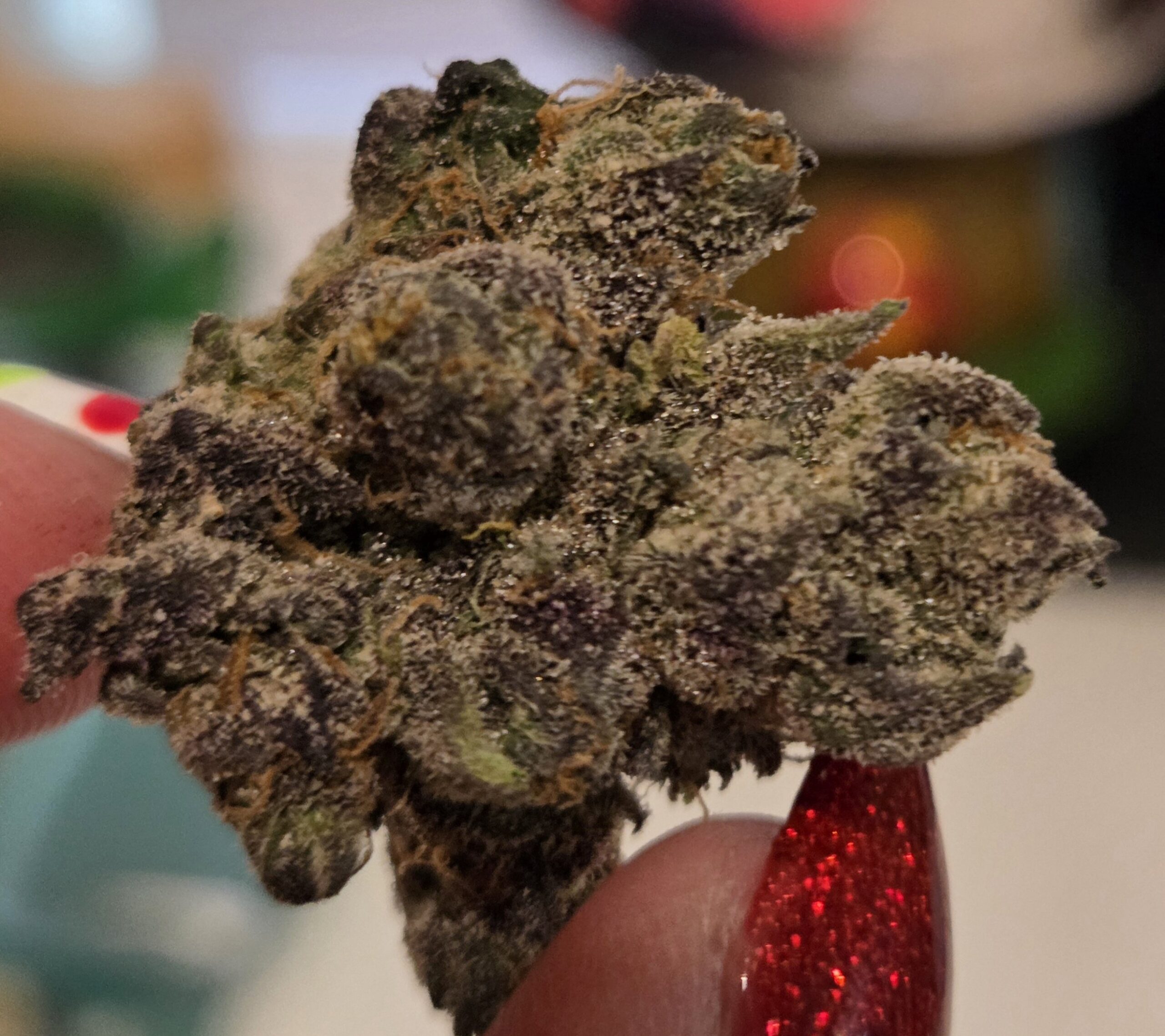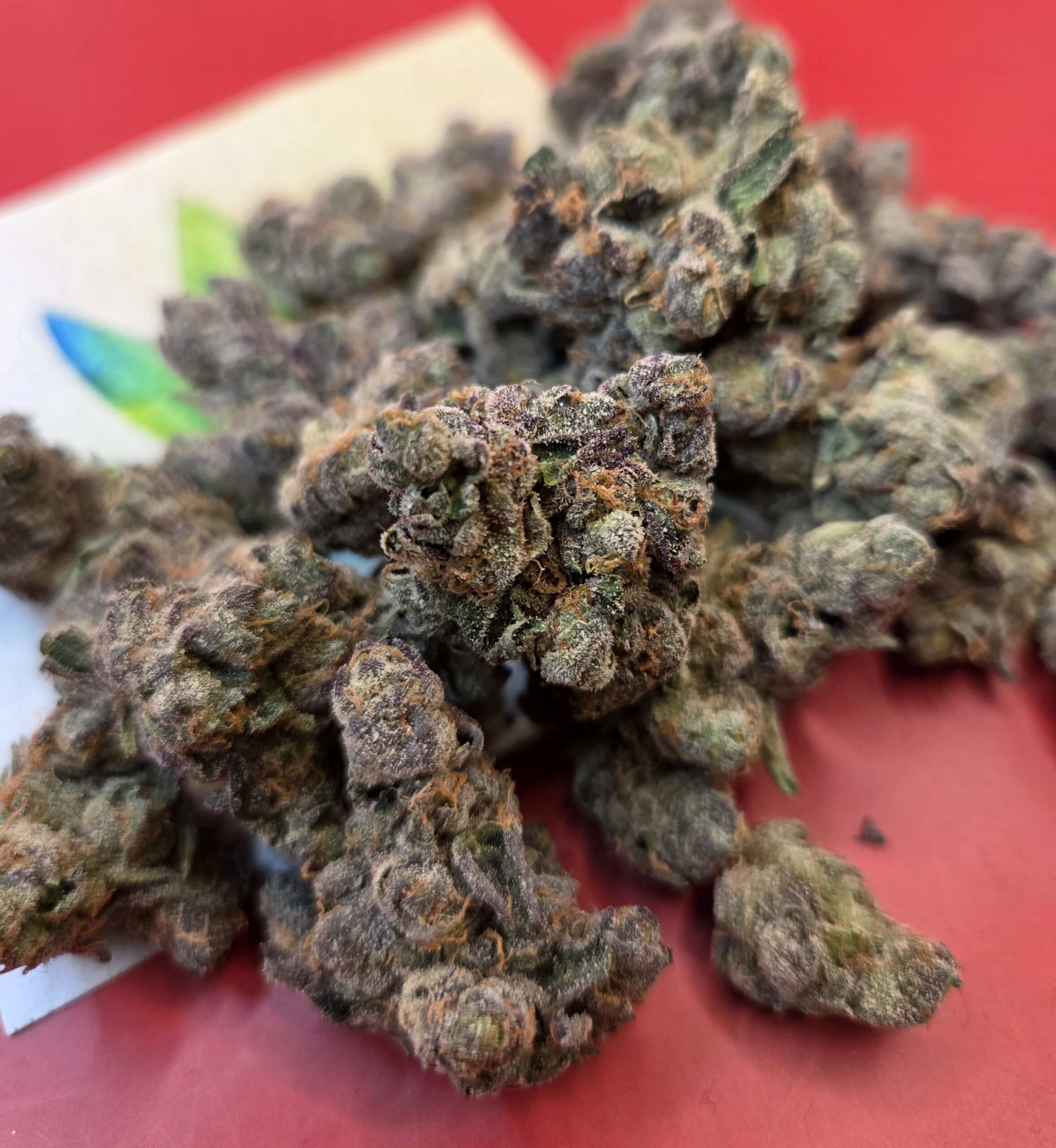 Dolato, also known as “Do-Si-Lato” and “Dosi-Lato,” is an indica marijuana strain made by crossing Do-Si-Dos with Gelato #41. Dolato has a beautiful range of colors in its colas—from light to dark green and red-wine purple to bright orange, all dusted with diamond-like trichomes. Dolato’s terpene profile features a fruity, earthy scent followed by a sweet lavender taste. Dolato may leave people feeling stress-free and sedated, making it perfect for a slowed-down night in, perhaps paired with a bath and a book.