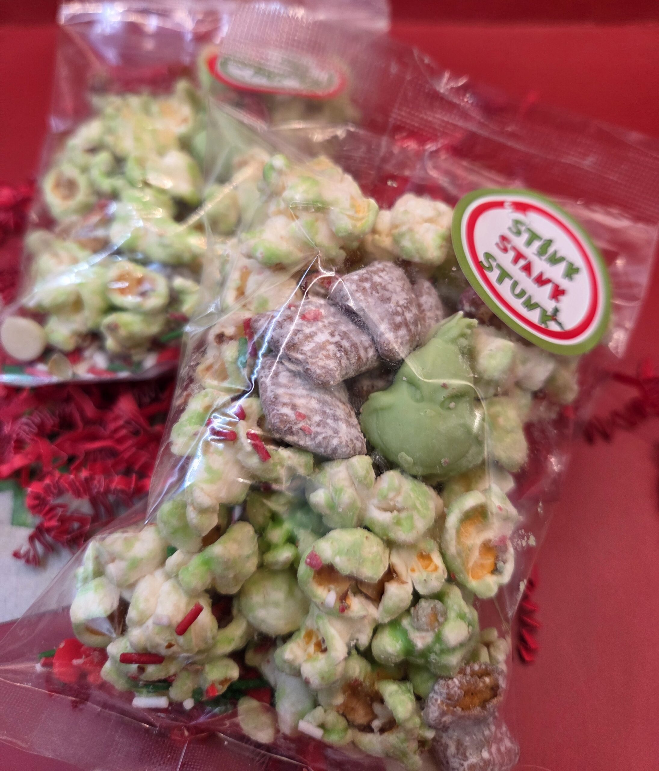 candy coated popcorn pretzels muddy buddy’s chocolate candies grinch chocolates